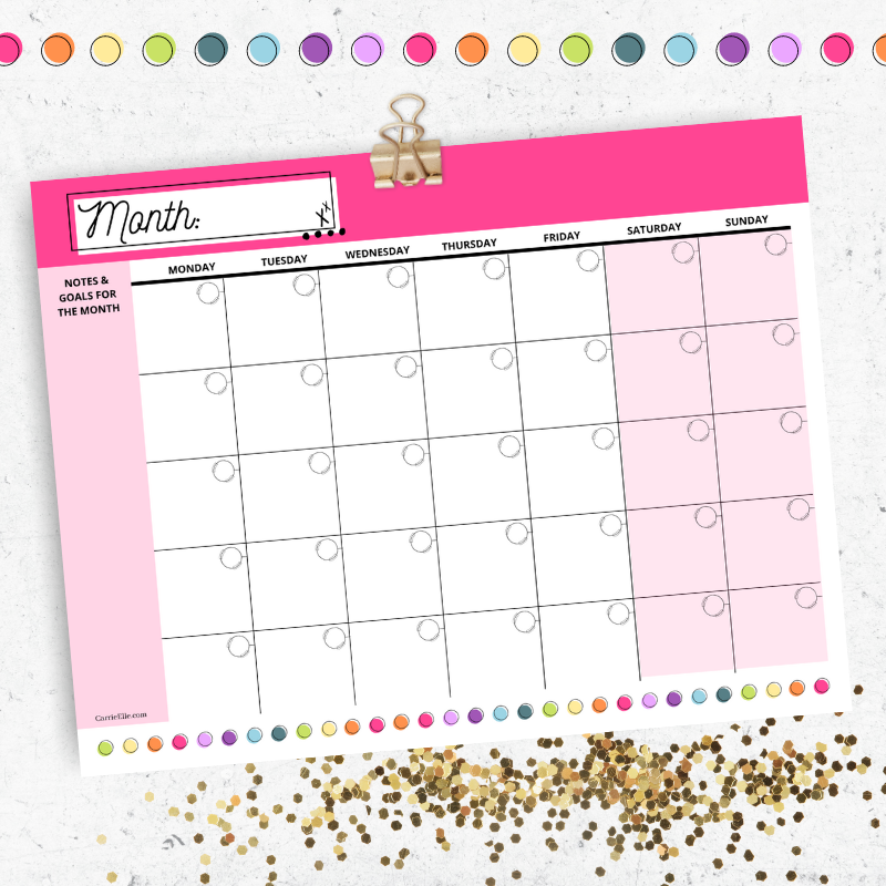 Pink Rainbow Undated Calendar Page