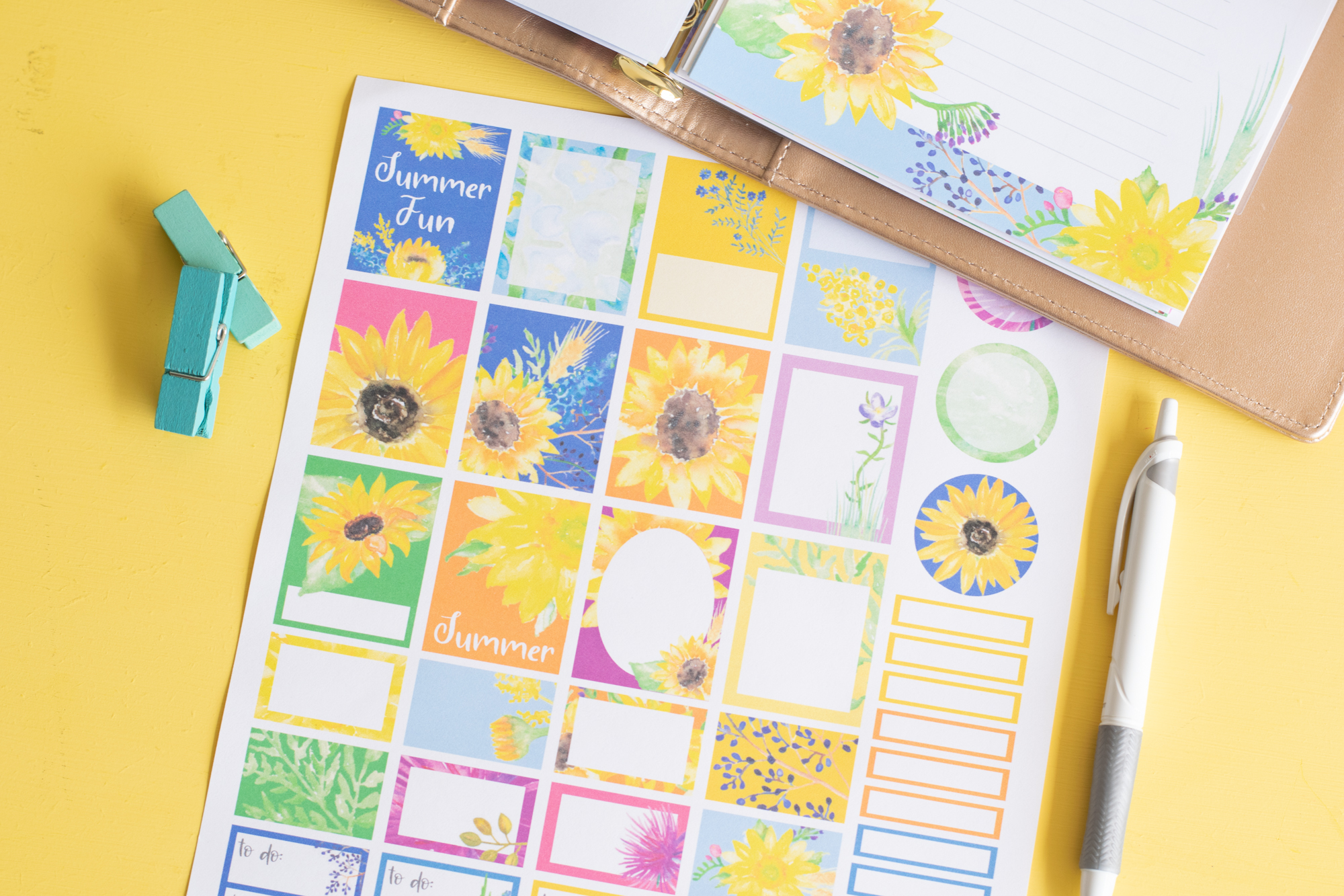 Summer Sunflower Planner Stickers