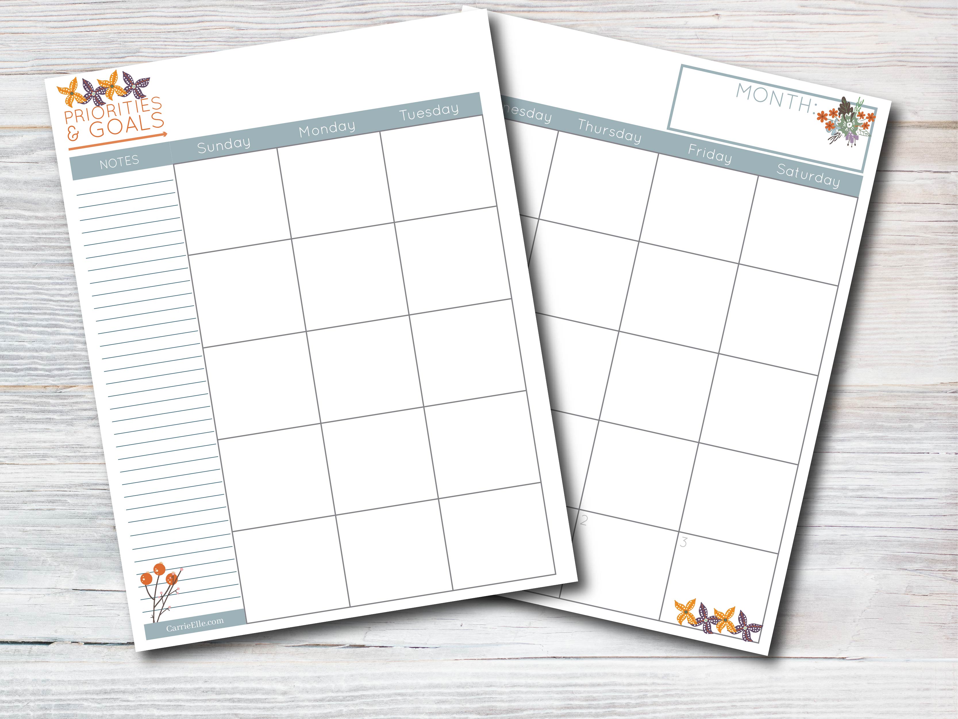 Two-Page Monthly Calendar Spread
